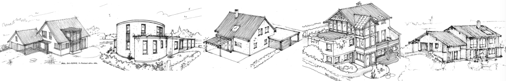 Priorité à une architecture verte : comme nous l’avons vu, les pièces de vie principales sont à situer sur des zones de terrain bien vitalisées, et à orienter selon les atouts climatiques locaux. Les espaces de jour sont de préférence en secteur lumineux sud, et les chambres, salle de bain, wc, cellier, garage, entrée, plutôt côté nord, en zone tampon vis à vis du froid. Les débords de toit et les ouvertures vitrées sont à placer et concevoir en lien avec les angles du soleil d’été et d’hiver.